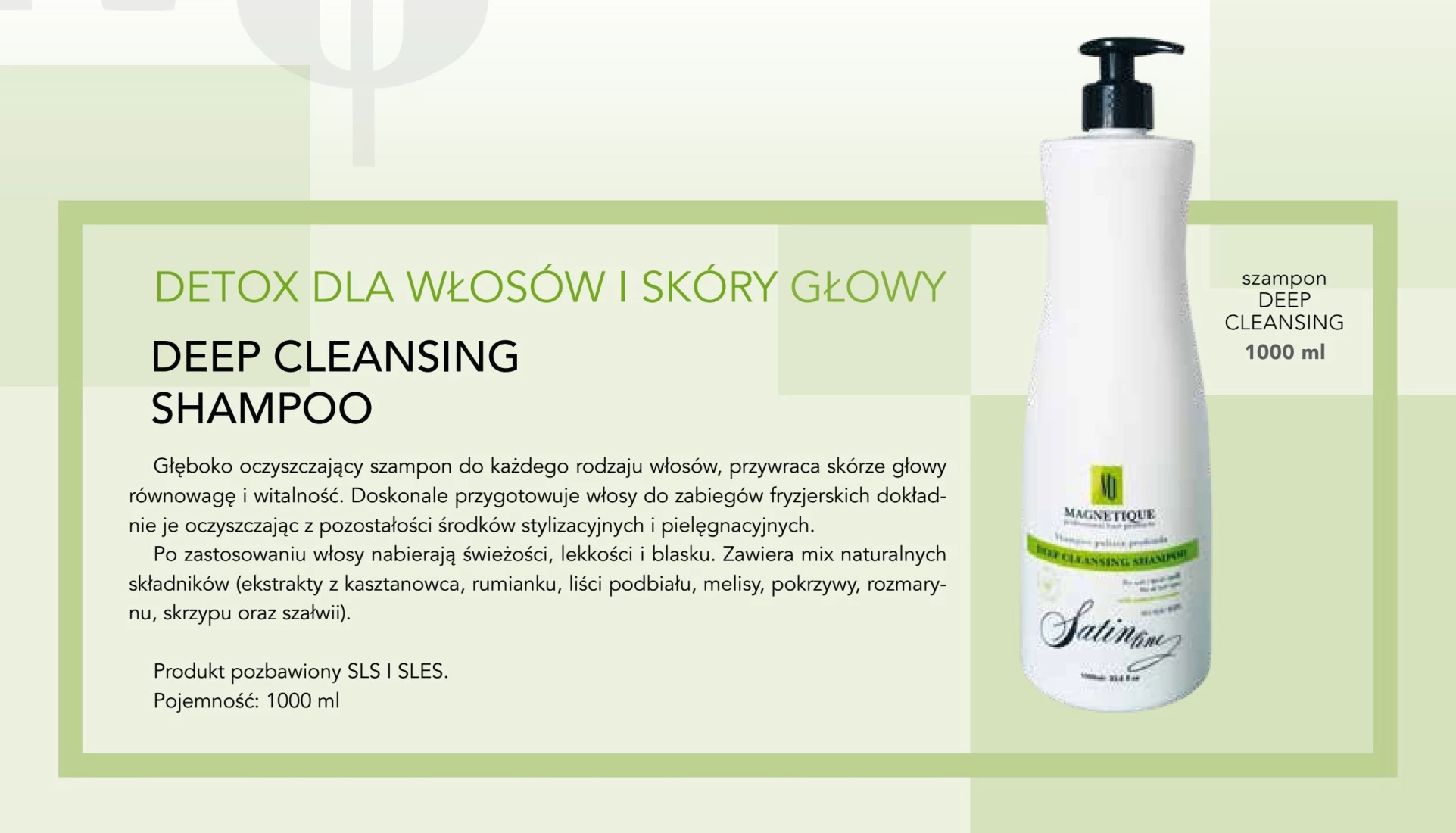 W ofercie szampon DETOX DEEP CLEANSING, głęboko oczyszczający, przywracający skórze głowy równowagę i witalność.